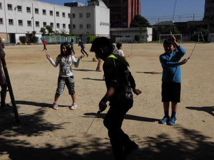 10回跳ぶと一つ〇に色を塗り、1000回跳んだら賞状がもらえるということで子どもたちは最近休み時間になっては外に飛び出し縄跳びをしています。