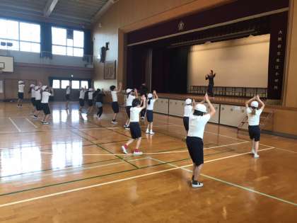 ステップを習得した後は、そこに上半身の動きも合わせ、最後には曲のサビの部分のダンスをみんなで踊りました☆