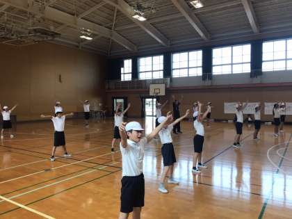 4拍子のリズムに合わせて様々なスキップをしたり、4ステップの踏み方を学んだりしました。