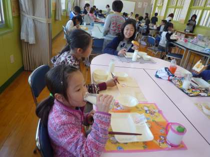 楽しい給食になったおかげで、いつもは食べ終わるまでに時間がかかる1年生ですが、全員時間内に食べ終わることができました。