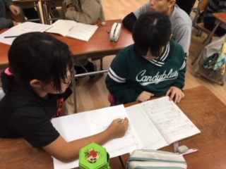 今日は、1/100の位まである、小数のたし算の学習をしました。「位取り表」や「筆算」などの方法を使って、どの児童も真剣に考えていました。