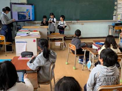 国語の単元で、「ビーバーのひみつを見つけよう」を学習しました。自分たちでも、動物のひみつを見つけ、クイズを作りました。問題を考えたり、写真をとって、はりつけたりして、タブレットを使ってクイズを作ることが出来ました。クイズ大会は大盛り上がりでした。