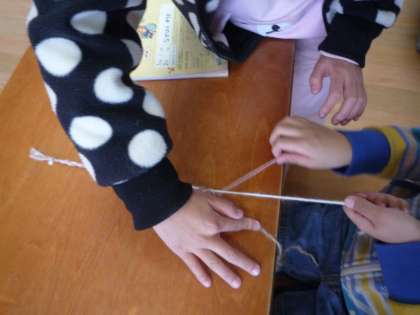 3つの毛糸で編む「三つ編み」なのですが、やったことのない子が大半で、どうすればわかりやすく伝わるかな???と頭を抱えました。