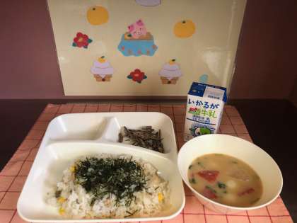 給食では、金時にんじんを使用し、関西風の白みそ仕立てのぞう煮が登場しました。