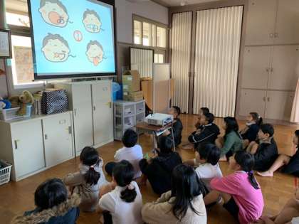 保健の先生からは、これからの季節、口呼吸でいるとウイルスが身体に入ってきやすくなるお話を聞きました。鼻呼吸をして、ウイルスが入りにくいように、練習をしました。