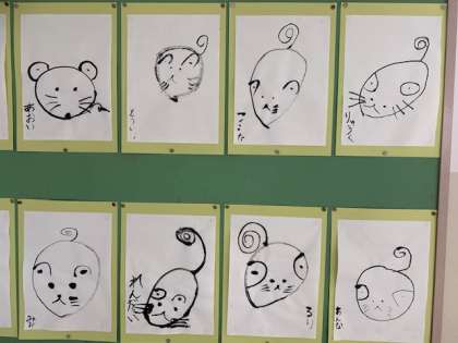 今年の干支のねずみを書きました。墨で書いたねずみは、どれも愛嬌のある趣きになりました。
