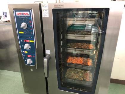 3枚目の写真は、焼き物機でマカロニグラタンを焼いている様子です。