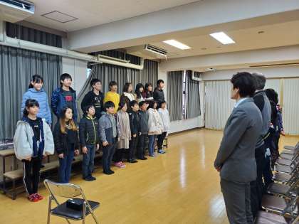 放課後は教職員との茶話会が実施され、教職員の方々に6年間のお礼の言葉と歌を送りました。
