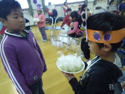 を歌って、2年生特製の茶巾しぼりをいただきました。