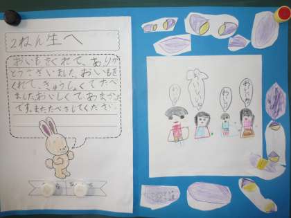 おいもパーティーに招待してくれた2年生にお礼のカードを書きました!!