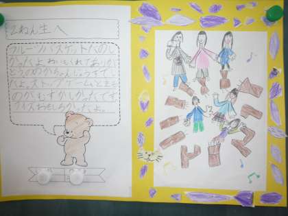グループごとに文と絵を書き、今朝、2年生に届けました。