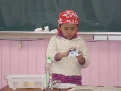 まずは、おしごとの名人であるお母さんになりきるために、バンダナをつけました。