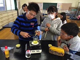 市販の仏壇用ろうそくを溶かして、クレヨンで好きな色をつけます。