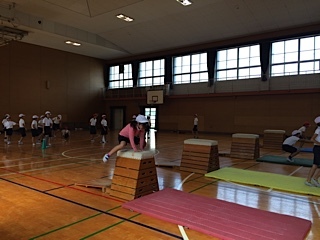 跳び箱にチャレンジしています。