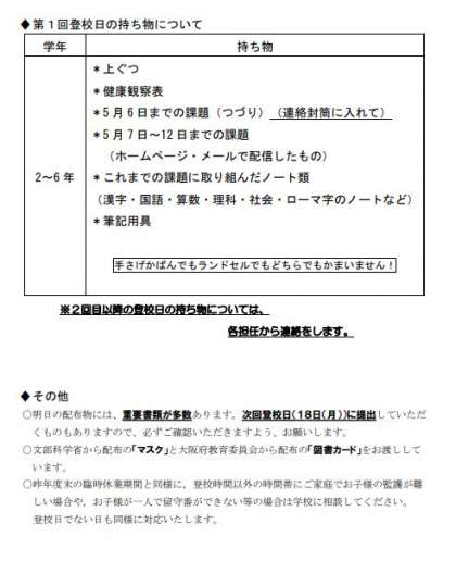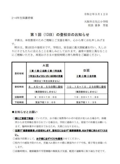 5/13 第1回登校日のお知らせ