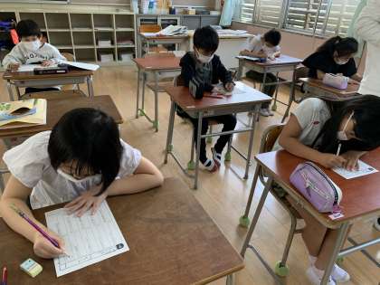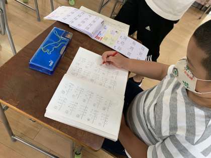 3回目の登校日の今日は、算数ノートの丸つけをしたり、漢字がどれだけ習得できているか、確認テストをしたりしました!!