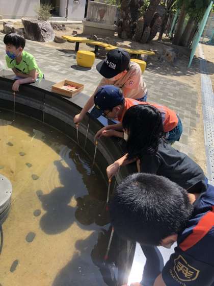 5回目の登校日は、前回学習した気温や水温を実際に測りました!!
