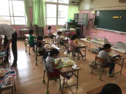 今日は初めての3時間授業、みんな疲れたかな。そして楽しみにしていた給食も食べました。おいしい、という笑顔がとても素敵でした。また、最後まで静かに食べることができました。