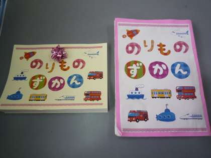 以前もお知らせしました国語科で取り組んだ「のりものずかん」が完成し、本日、子どもたちにプレゼントしました。