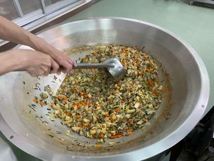 中華煮の材料は、「豚肉、キャベツ、たけのこ、たまねぎ、にんじん、にら」を使っていました。