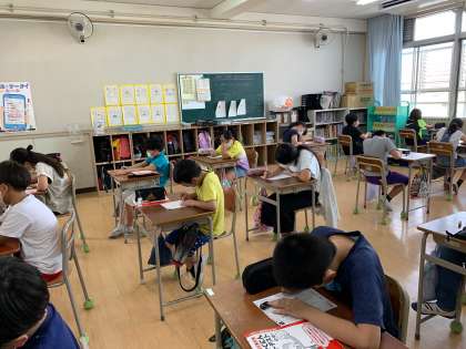 今日は、5年生になって初めてのテストでした。少し緊張した様子でしたが、テストが始まるとみんな真剣に取り組んでいました。終わった後はすぐに漢字ドリルを見て「合ってた!」「あー、間違った。」など友達と話している声が聞こえてきました。
