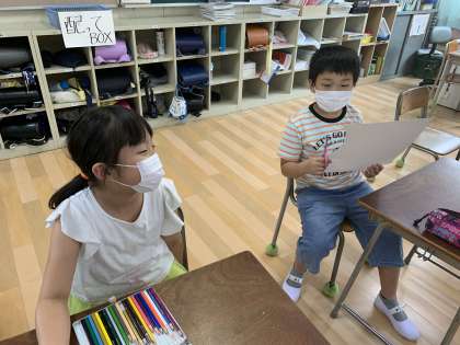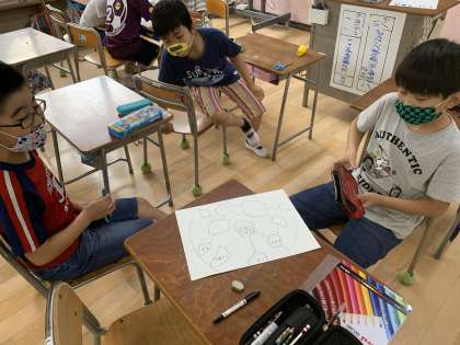 画用紙の形を工夫したり、どんな書き方がみんなに伝わりやすいかなどなど考えたりと、ソーシャルディスタンスを考えながら、活動していました。
