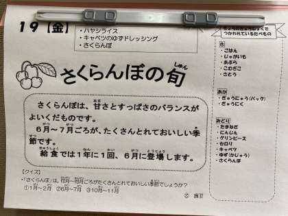 そして、今日は1年に1回給食に出る「さくらんぼ」が登場しました。
