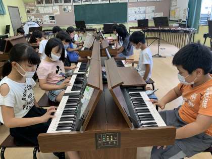 休み時間も教室前の廊下にある木琴やオルガンを楽しんで演奏している3年生!!!