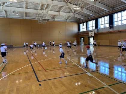 今日は前半は藤本先生と瞬発力を鍛え、スタートダッシュを速くする学習を、後半は諏訪原先生とボール鬼ごっこのような楽しいゲームをしました!