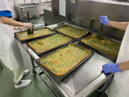 小麦粉、卵、水、塩を合わせた中に、にらやにんじんなどの野菜、肉、えびやいかなどの魚介類を加え、ごま油を熱したフライパン(鉄板)で薄くこんがりと焼きます。しょうゆ、酢、ごま油などを好みで合わせたたれをつけて食べることが多いです。