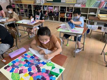 図画工作科で描いていた紫陽花の花の絵が完成しました。