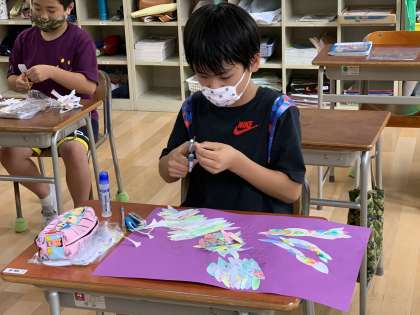 図画工作科で取り組んでいる『絵の具でゆめもよう』