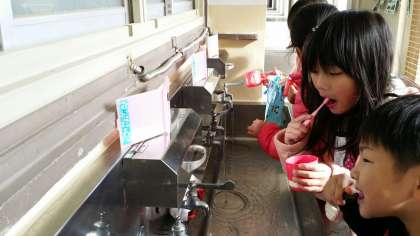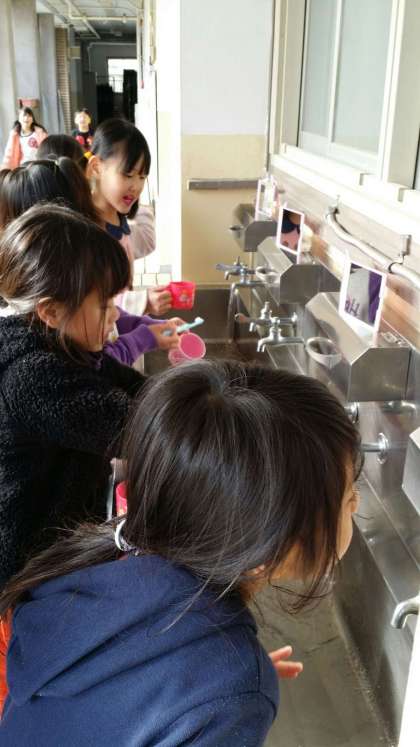 今週は歯みがき強化週間です。給食後の歯みがきをいつもより念入りにします。