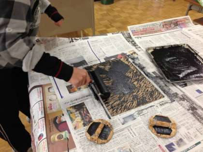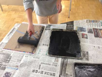 誰一人けがすることなく彫刻刀で彫る作業も終わり、次はいよいよ印刷です。