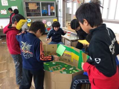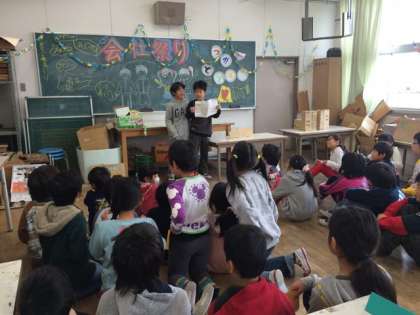 5年生みんなで企画してきた「会社祭り」に3年生を招待しました。