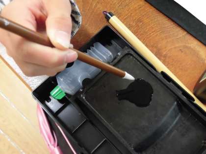 筆先をつぶさないように墨汁をつけて何度も練習していました。