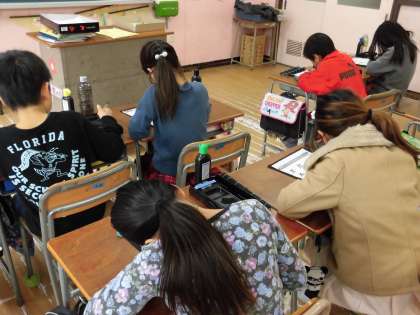 習字の時間、小筆で名前の練習をしました。