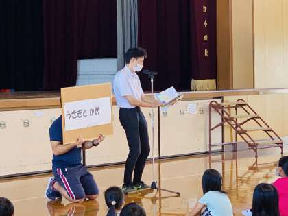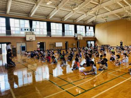 1学期はなかなか全校で集まることはできませんでしたが、2学期のスタートは全員で切ろうと、感染症予防と暑さ対策をしっかりして全校で集まりました。