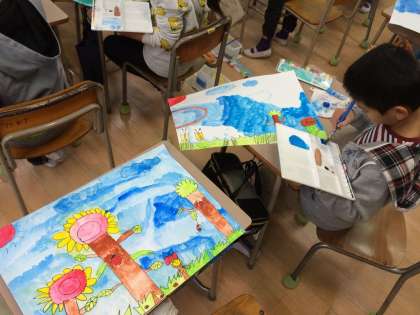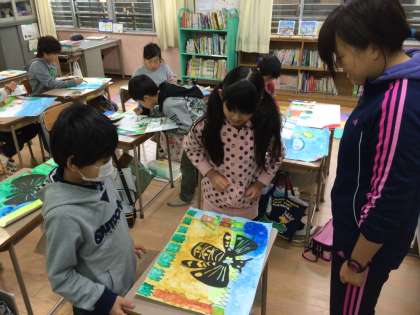 多くの子が背景の絵をかき上げたので、どのようにチョウを舞わせたらいいかを考えていいました。