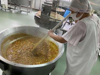 写真は、カレーを作っている様子です。