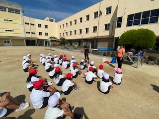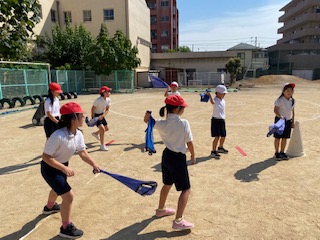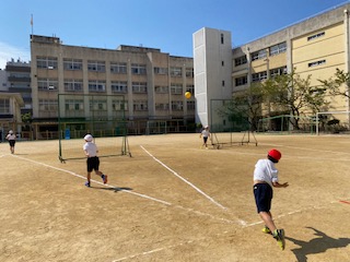 9/23、昨日の体育は講師の先生に来ていただいてボール投げ運動を行いました。