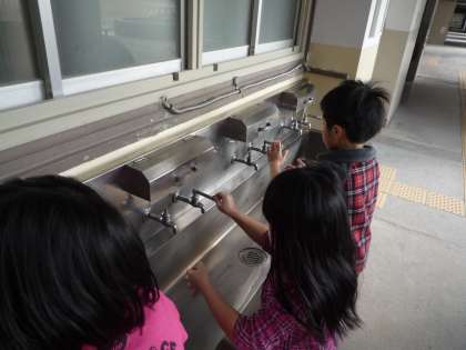 発育測定の後、藤田先生に『手洗い』についての保健指導をしていただきました。