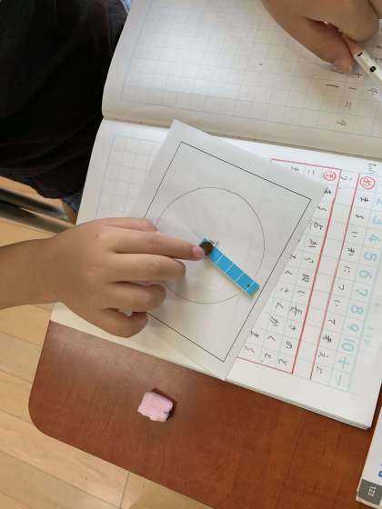 紙一切れできれいな円がかけることに感動した子どもたち。