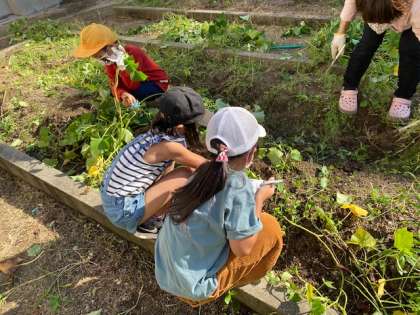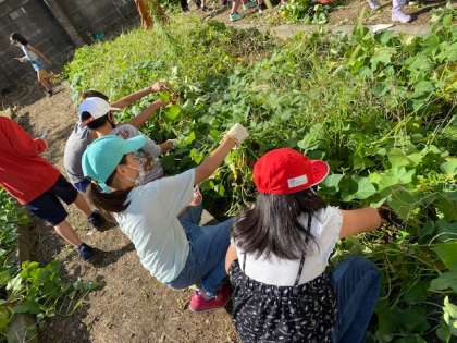 久々に学習園を見た子どもたちは、あまりにも長いつるを見て、とても驚いていました。