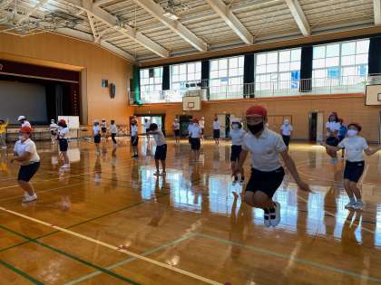 体育の学習で、講師の方に来ていただき、なわとびの跳び方を学びました。あやとびや交差とび、二重とびの跳び方のコツを聞きました。最初は、なわとびを持たずに手首の回し方の練習をし、どのタイミングで手首を速く回すのかなどを聞いてから実際になわを持って跳んでみると、「跳べた!」という声が聞こえてきました。みんな一生懸命話を聞いて、習得しようとしていました!