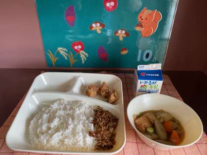 今日の給食では、「鶏肉のたつたあげ」が献立で登場しました。