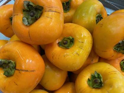 柿は、東アジアを原産とし、日本では奈良時代から栽培されている果物です。大別して甘柿と渋柿があります。今回の給食に使用している平核無柿は、渋柿の一種です。渋柿は、アルコール・炭酸ガスなどで渋抜きをしたり、干し柿に加工したりして食べます。
