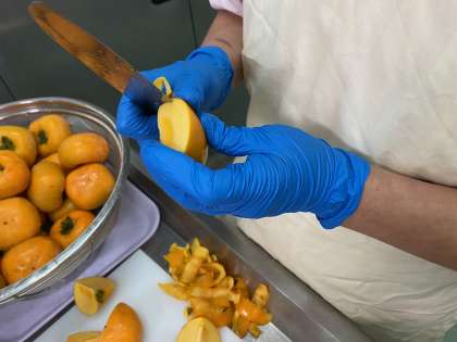 今日の給食献立では、「かき(平核無柿)」が登場しました。