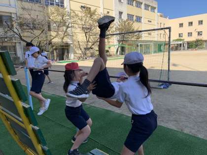 感染症予防対策により、休み時間の遊具開放をしていないため、練習は体育の時間のみになってしまいますが、何度も何度もチャレンジして頑張っています。