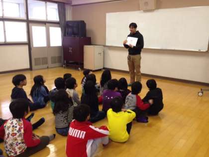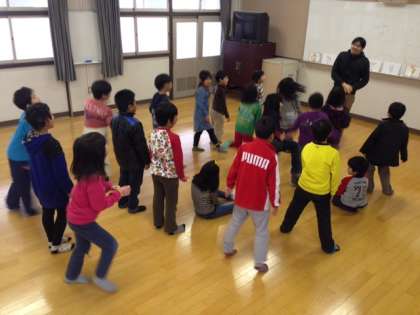 普段は高学年の外国語を担当されているネイティブスピーカーの先生に英語を使った授業をして頂きました。子どもたちは初めての体験で最初は固まって何て言ったの今?など戸惑っていましたが、ゲーム活動が始まるとジェスチャーをよく見ながら楽しく取り組むことができました。